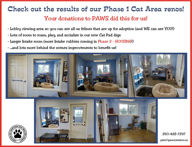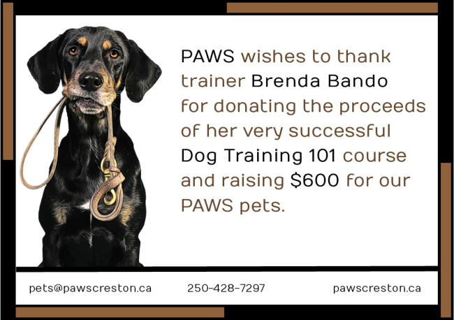 PAWS, 2805 Lower Wynndel Rd., Creston, B.C. V0B 1G8.