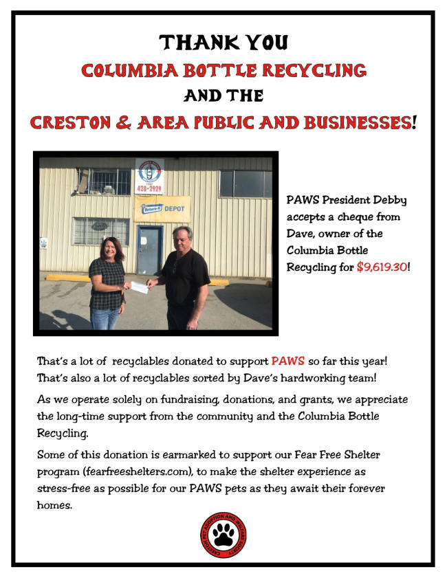 Creston, BC V0B 1G6. While PAWS does not have recyclable bottle