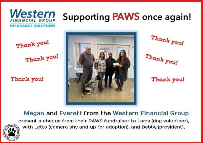 - CRESTON AND DISTRICT CREDIT UNION: Simply let them know it’s for PAWS. You can