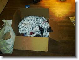 My Mom came to visit from Virginia for a week in March, and it was her first time meeting Beatrice. Beatrice was such a traitor to us. . .she immediately bonded and trusted my Mom, choosing to sleep with her at night. She'd stay up a bit later watching television with us on the couch, then open the guest bedroom door and crawl into bed with her grammy. For several days after my Mom left, Bea continued to search the house for her. Lovingly, Mom bestowed Beatrice the nickname, Spotty Dotty.