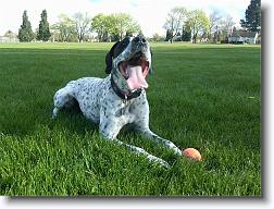 Bea has just excelled at her obedience training. She is coming when called, even off the leash. She's always loved to chase rubber balls thrown with the Chuck It toy, but she seems to have an extra bounce in her step now that the weather is warming. This weekend, she sprinted so fast at the dog park, that the fur on her shins was green from grass stain! I hope to get a photo of her green tinged fur to send you soon. She relishes being the fastest dog at the park!