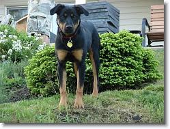 She also loves going over the horse jumps. I can point at a jump and she will gladly leap over it. Lately I have been riding and having her tag along side in the arena. I would like to be able to bring her along my walking trail rides in the spring, and I am also going to see if I can convince her to follow me over the fences. She knows the difference between my one horse Kayla and the other Earl. If you ask her to "go get Earl" she bolts into the field and will run up to the one you have asked for. She hasn't figured out what to do from there, so she just sits by them.....
