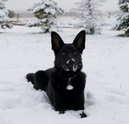 My very first snowfall was so funny! I had no idea what all the weird white-stuff was and even walked goofy on it! Once I ate the first big mouthful and realized it was water, well I would have eaten the yard if Mum and Dad had let me :D